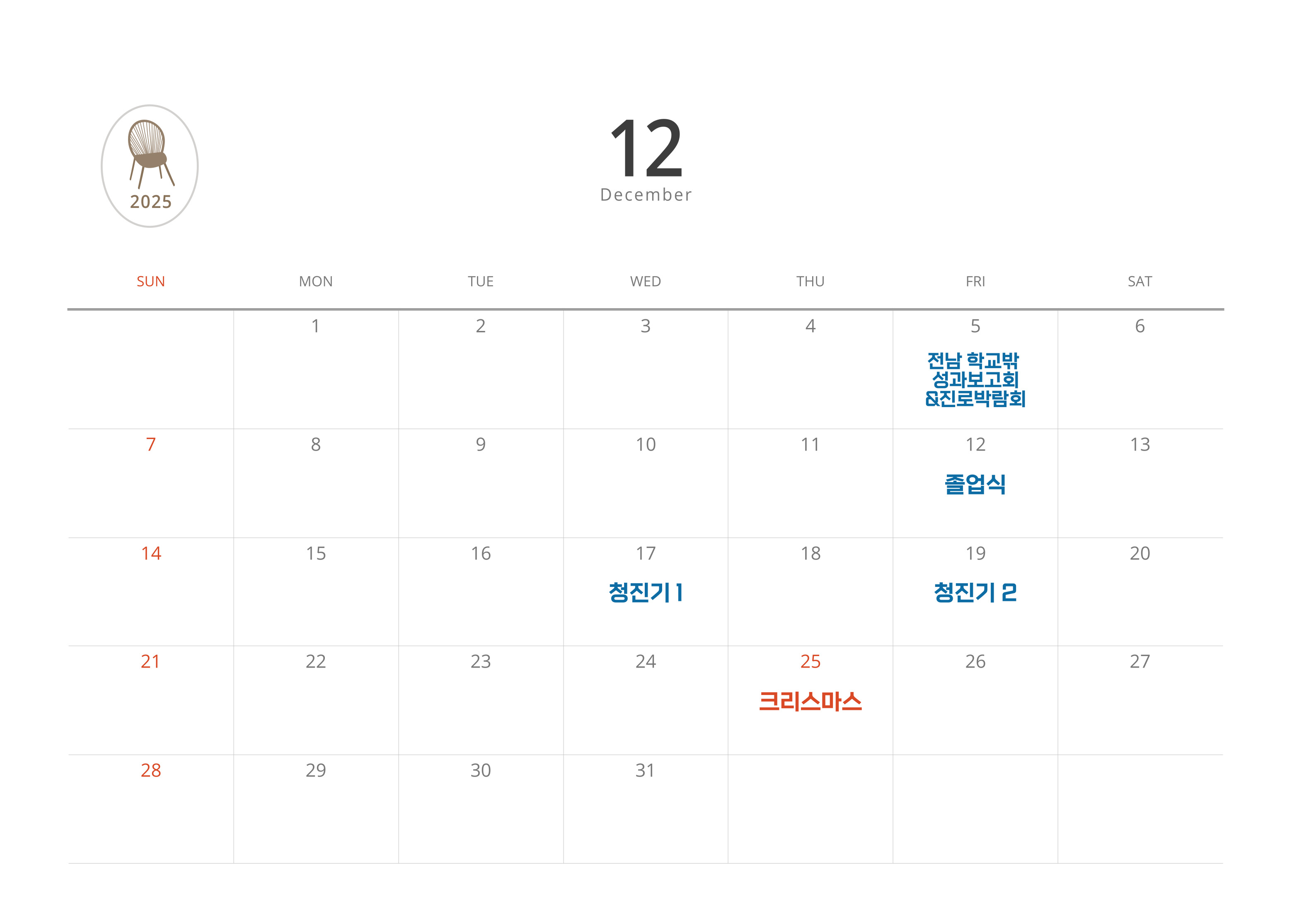 화순군학교밖청소년지원센터 12월 일정표