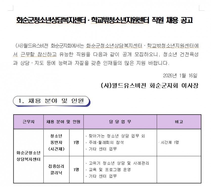 2026년 화순군청소년상담복지센터 채용공고문.hwp (128.0K)